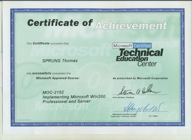MOC-2152 Implementing MS Win2000 Professional and Server