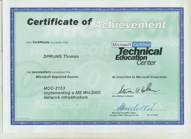 MOC 2153 Implementing MS Win2000 Network Infrastructure